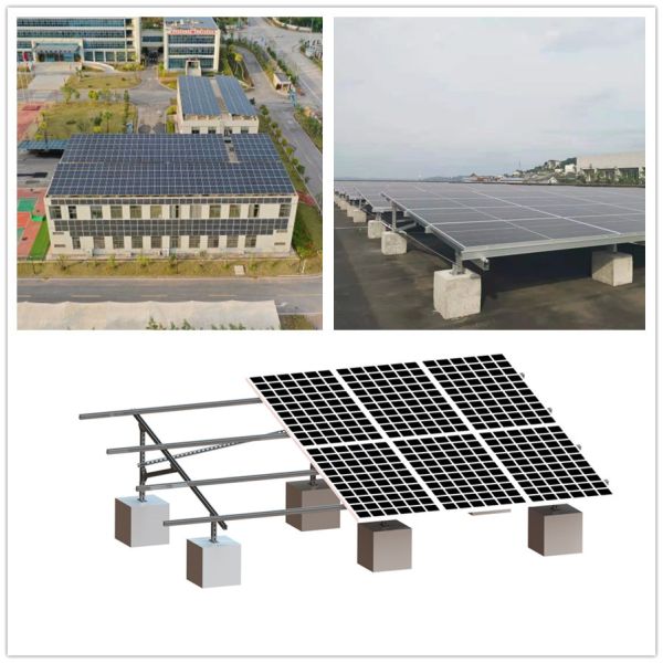 For the cement roof, it is usually flat or with a small angle, around 1~2degree, and the common installation methods are ballast type and concrete foundation type. The owner does not allow drilling on the concrete flat roof, mainly because he is worried about the strength of the old building or does not want to change the waterproof performance of the roof. This is why the ballast type or concrete foundation installation is selected.
